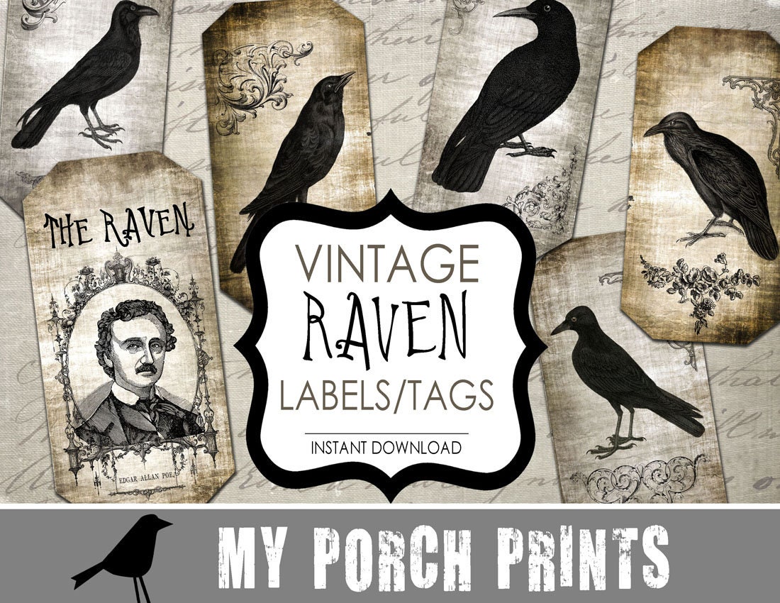 Halloween Decorations Raven Edgar Allan Poe Tag Label Etsy